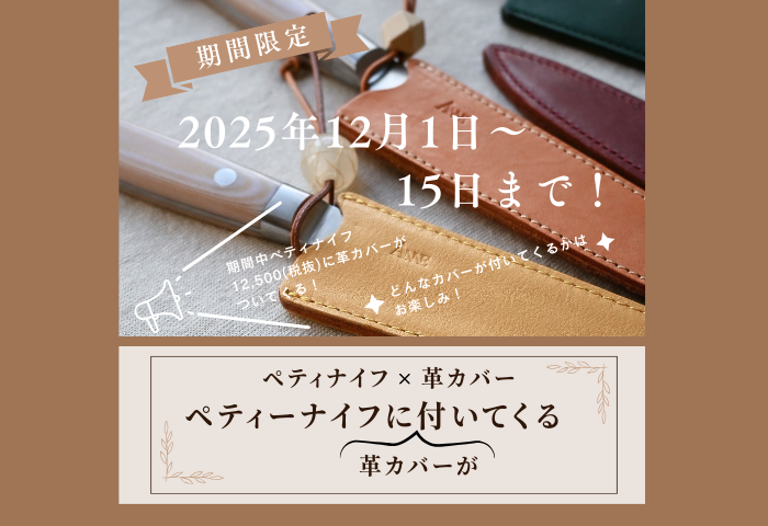 上記期間中、ペティナイフ (12,500円・税抜)をご購入の方に、革カバーをプレゼントいたします。